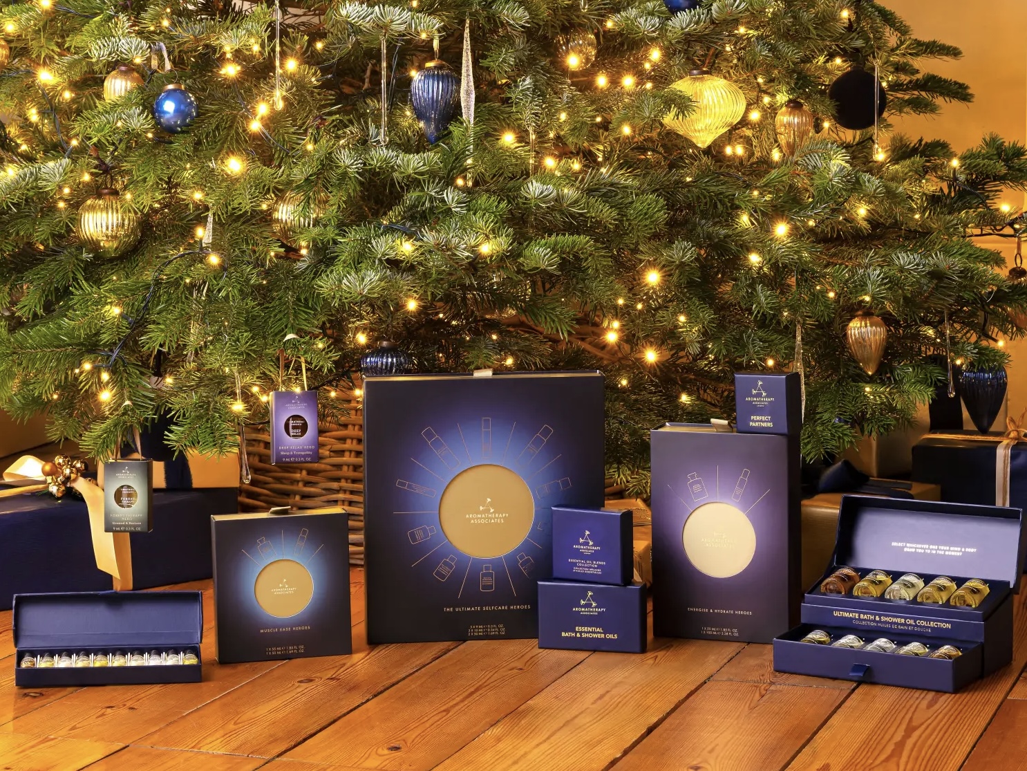 自分へのご褒美やクリスマスギフトにおすすめ♪施術の際に使用している英国アロマセラピーアソシエイツ製の期間限定販売クリスマスコフレ、アロマオイル展開中♪